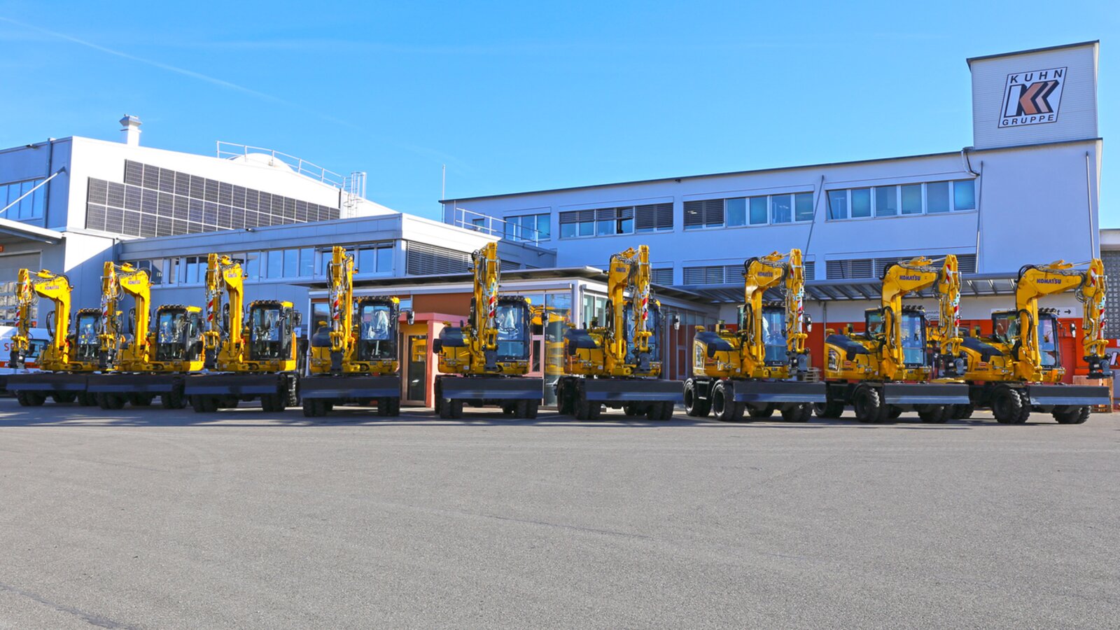 KUHN Schweiz AG had the pleasure of handing over nine new Komatsu PW98MR-11E0 wheeled excavators to Avesco Rent AG. This renewed investment highlights a strong partnership and the trust placed in machines and service from a single source.